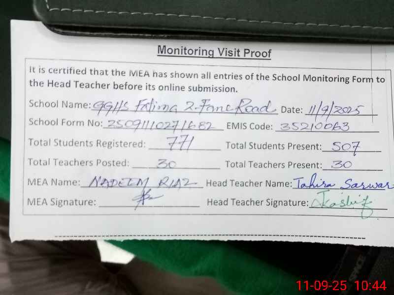 | EMIS Code: 35210063 | Name of School: GGHS FATIMA 2-FANE ROAD LAHORE | |||