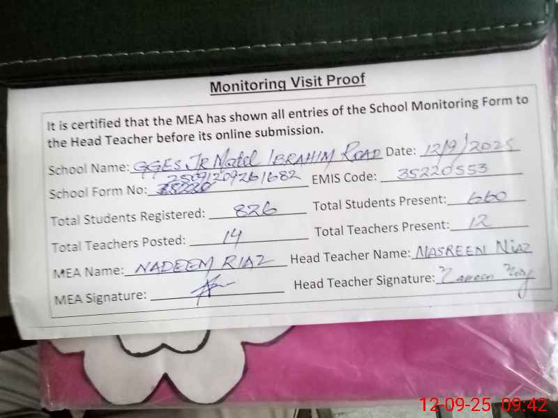| EMIS Code: 35220553 | Name of School: GGES JR. MODEL IBRAHIM ROAD (EX-MCL) | |||