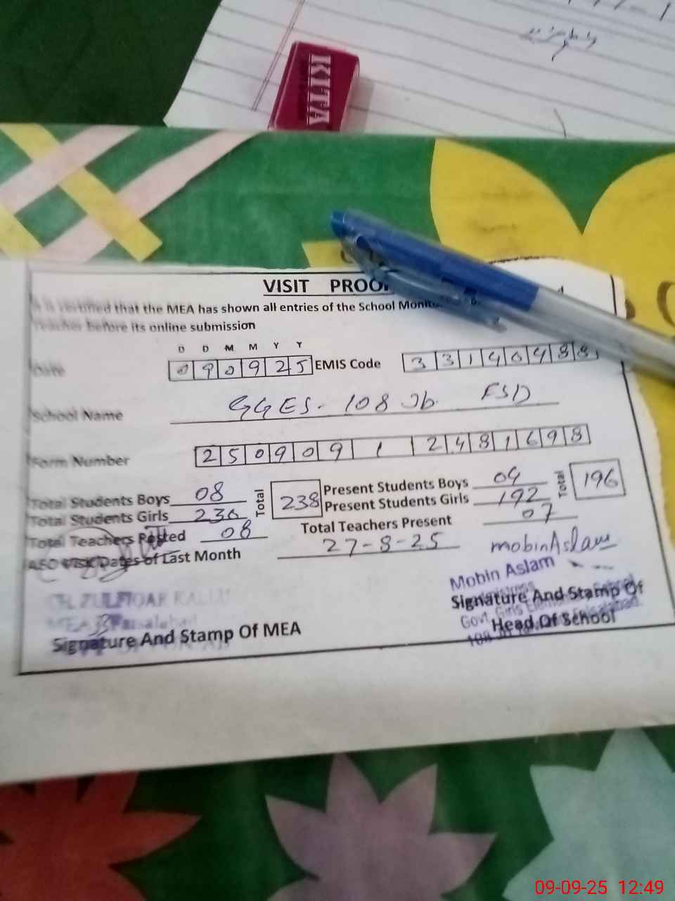 | EMIS Code: 33140488 | Name of School: GGES CHAK 108 JB | |||