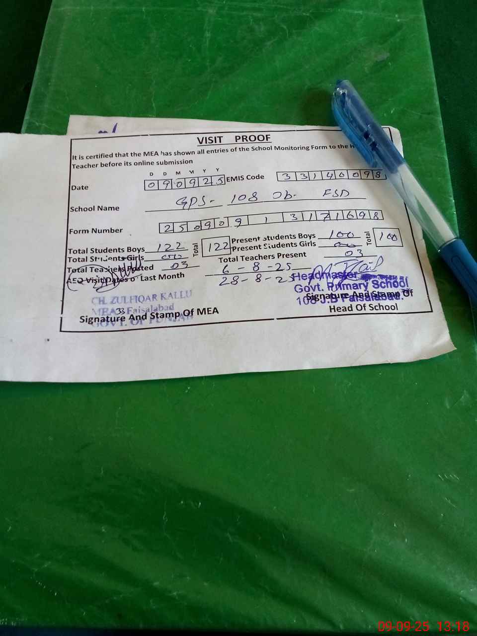 | EMIS Code: 33140098 | Name of School: GPS CHAK 108 JB TALUANDI | |||