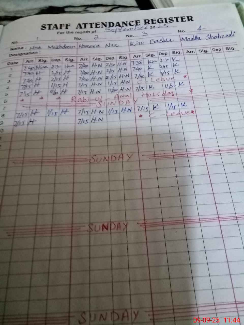 | CNIC | Full Name | Designation | R/C | Absence During Last Calender Month |
