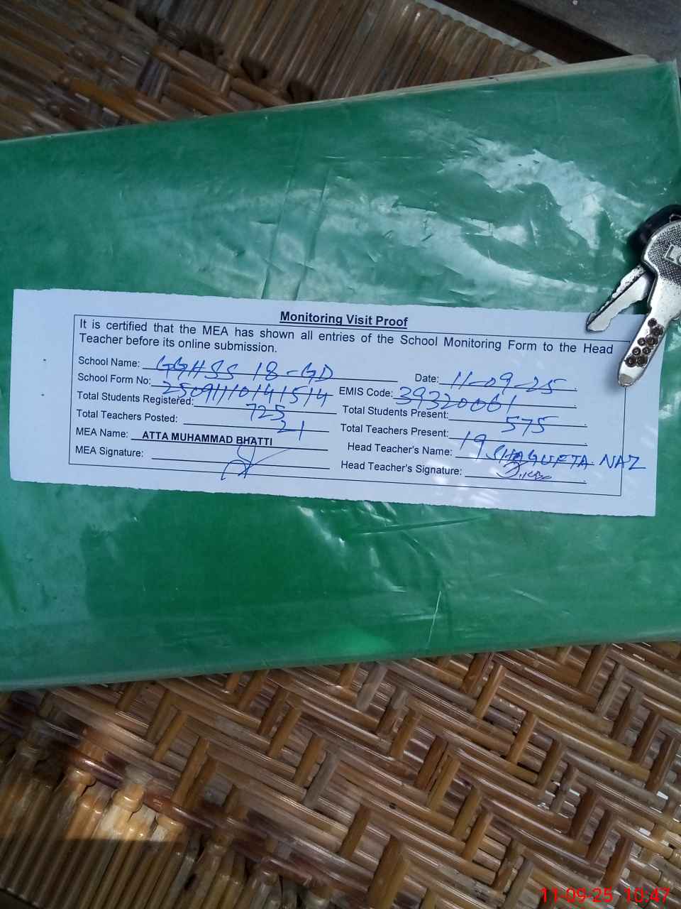 | EMIS Code: 39320061 | Name of School: GGHSS CHAK NO.18/G.D | |||