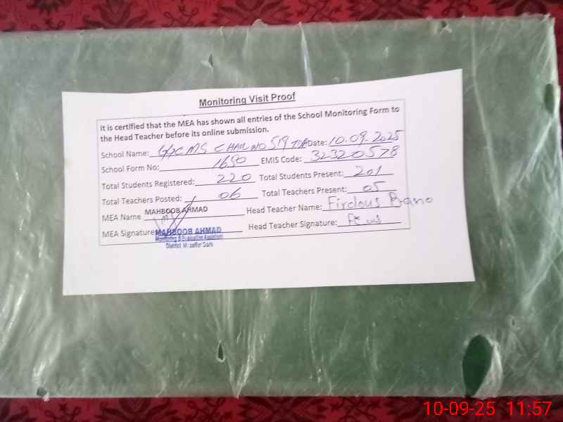 | EMIS Code: 32320578 | Name of School: GGCMS CHAK NO/ 519 TDA | |||