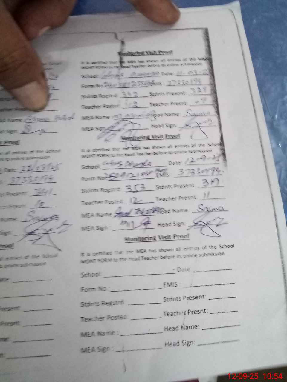 | Attendance Register | Head Teacher | MEA with School | Visit Proof |