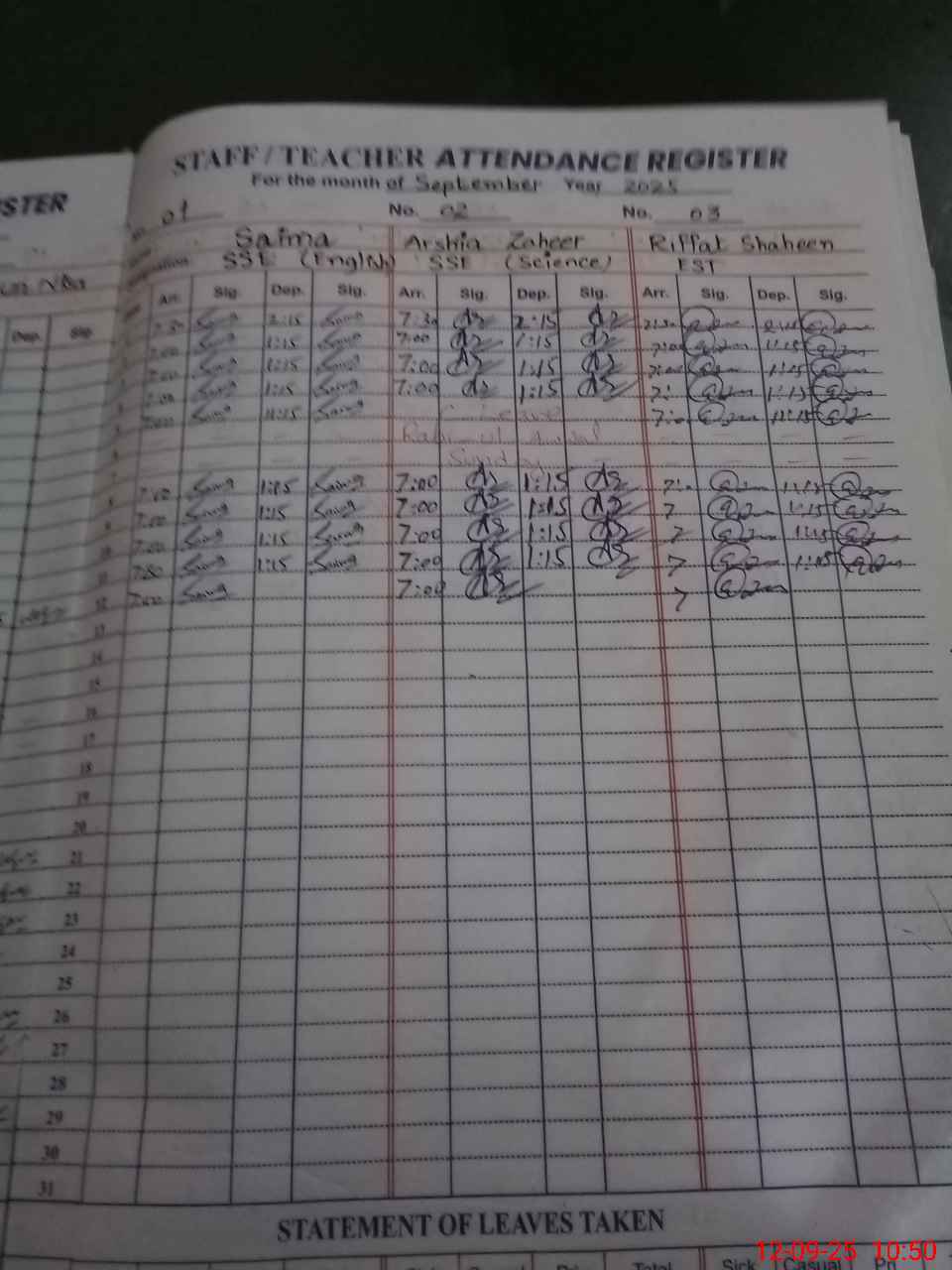 | 37**** | As**** Ba**** | 3 | 1 | 0 | 0 | 0 | 0 | 0 | 0 | 0 | 0 | 0 | Absent (Un-Authorized) |