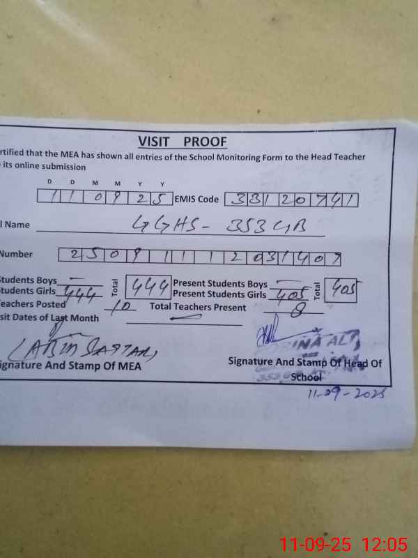 | EMIS Code: 33120741 | Name of School: GGHS CHAK 353 GB | |||