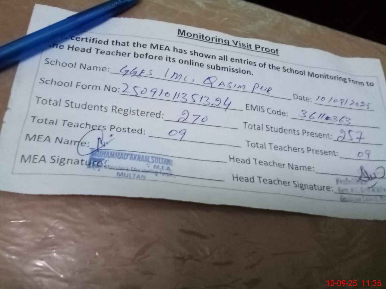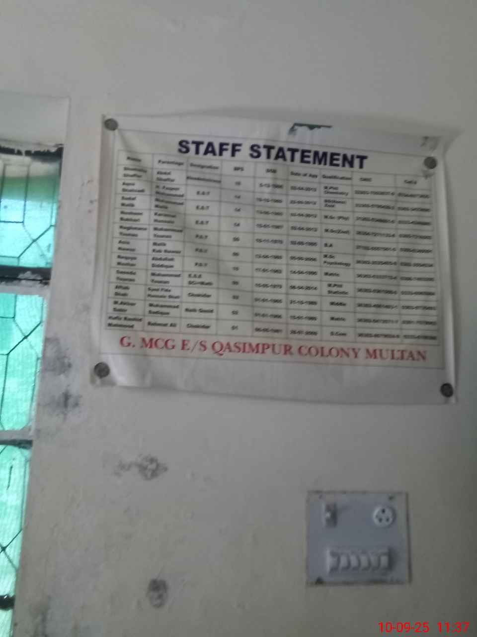 | EMIS Code: 36110363 | Name of School: GGES MC QASIM PUR COLONY MULTAN | |||