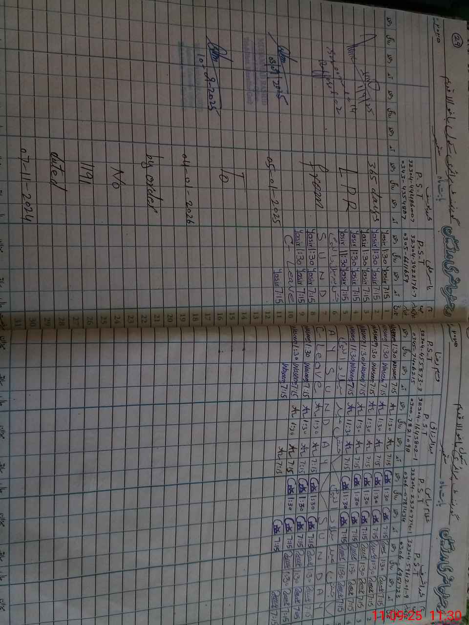 | CNIC | Full Name | Designation | R/C | Absence During Last Calender Month |