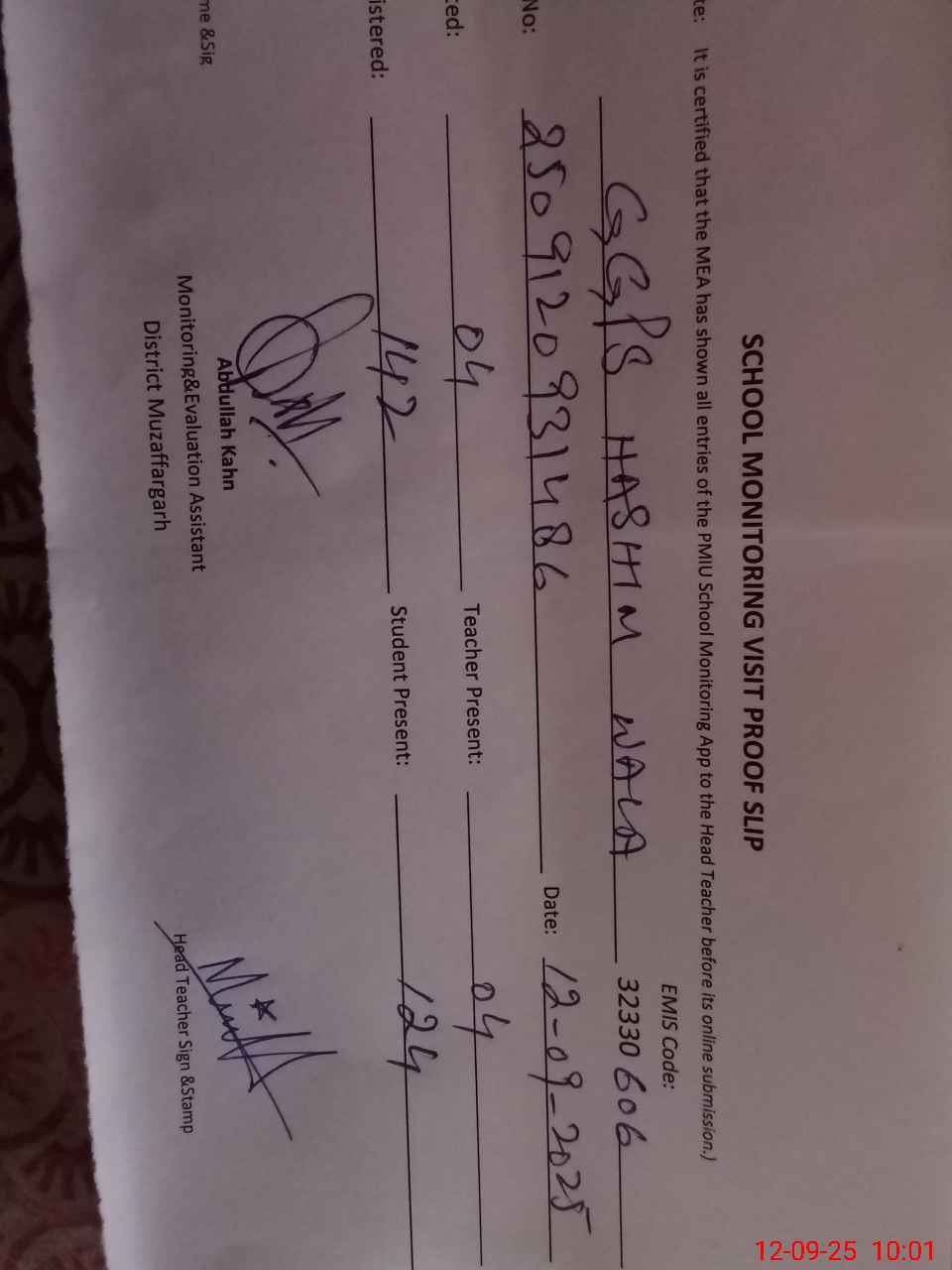 | EMIS Code: 32330606 | Name of School: GGPS HASHIM WALA | |||