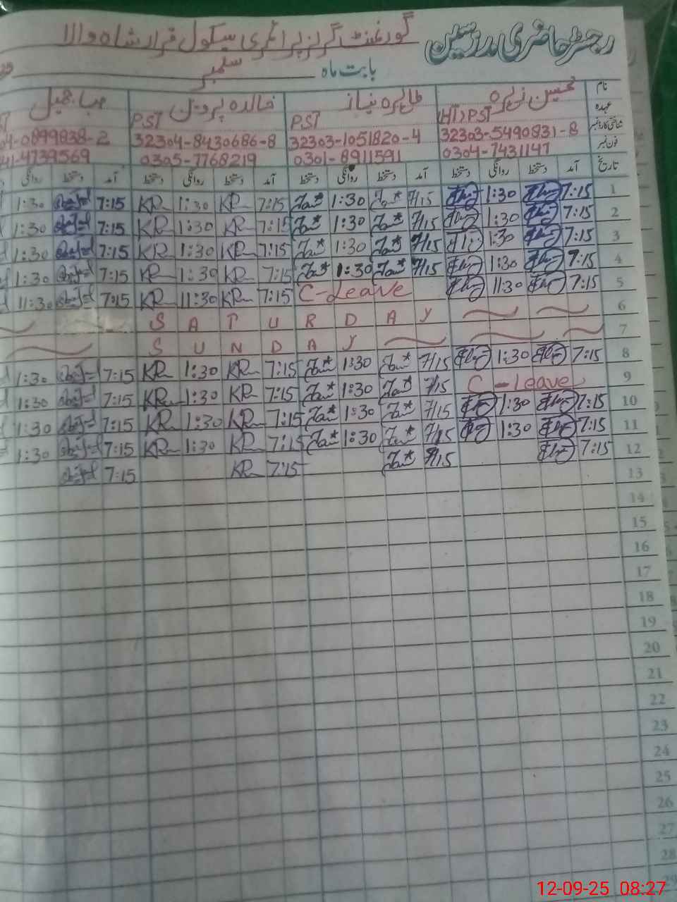 | CNIC | Full Name | Designation | R/C | Absence During Last Calender Month |
