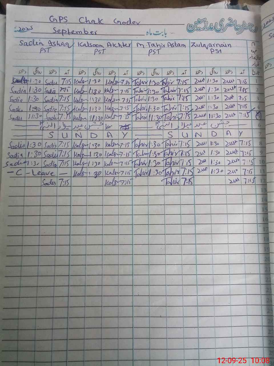 | CNIC | Full Name | Designation | R/C | Absence During Last Calender Month |