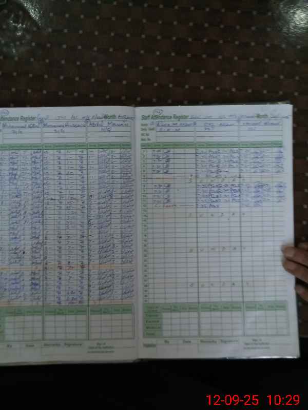 | Remarks (Use Separate Page if Required): Attendance of teaching staff and students on SIS Software is not updated Rana Muhammad Akbar SHM is on the posted strength of this School since 03 March 2022 but his name yet not shown in SIS Software Abdul Latif EST is on LPR w e f 12 September 2025 Data as per provided by School Staff and found during physical visit | |||||