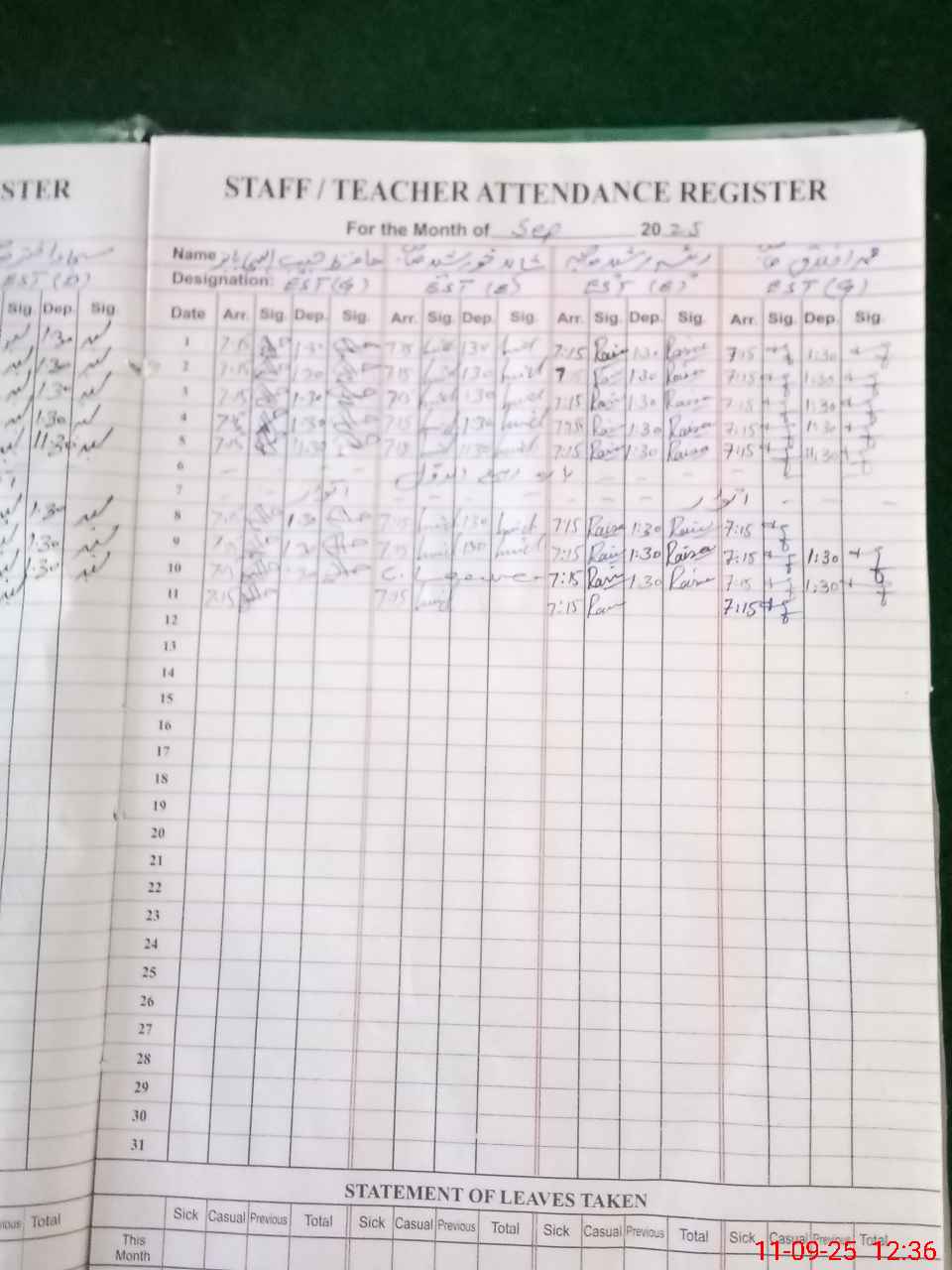 | Leave | Duty | Absent | Maternity | Medical | Ex- Pak |