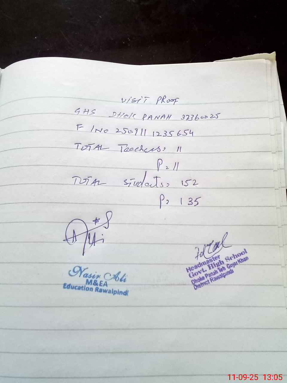 | EMIS Code: 37360025 | Name of School: GHS DHOK PANAH | |||