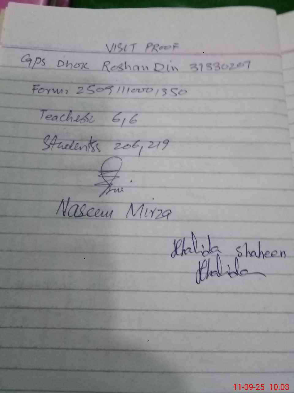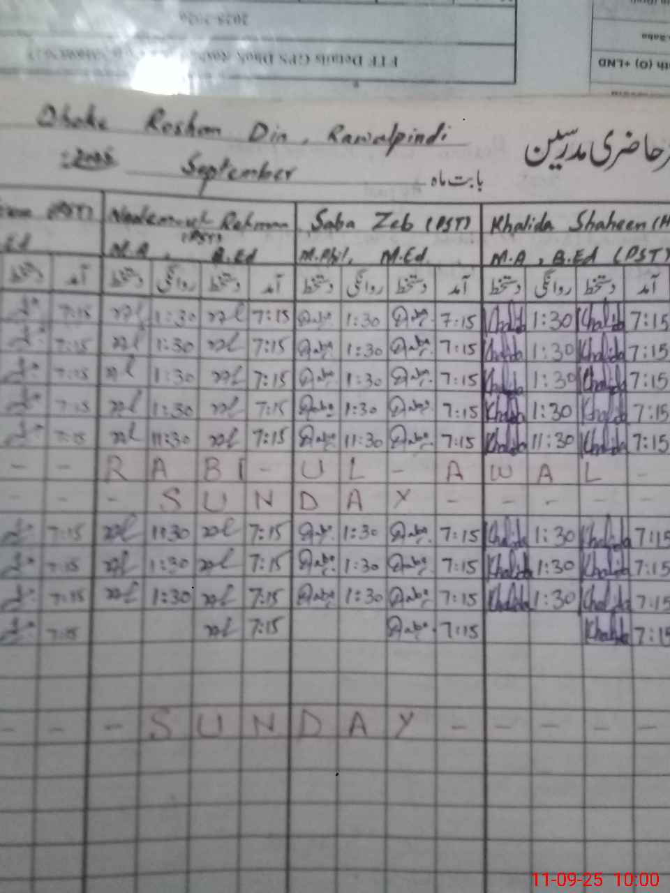 | Name: Kh**** Sh**** Designation: (School Headmaster's/Headmistress's) PST Phone/Cell Number: 03**** |