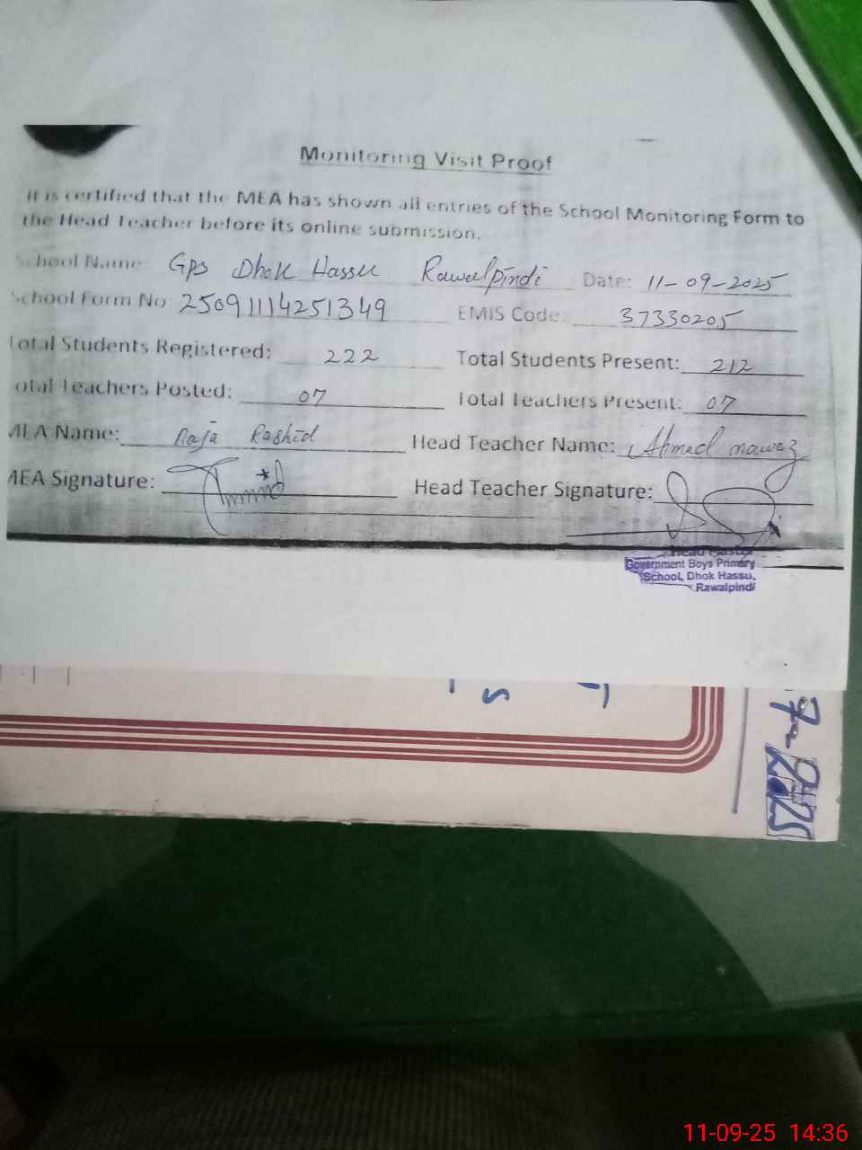 | EMIS Code: 37330205 | Name of School: GPS DHOK HASSU | |||