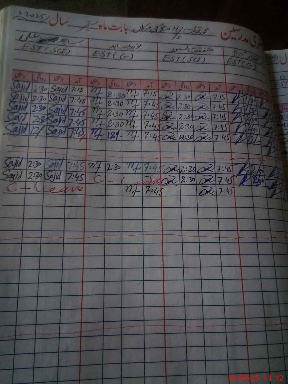 | CNIC | Full Name | Designation | R/C | Absence During Last Calender Month |