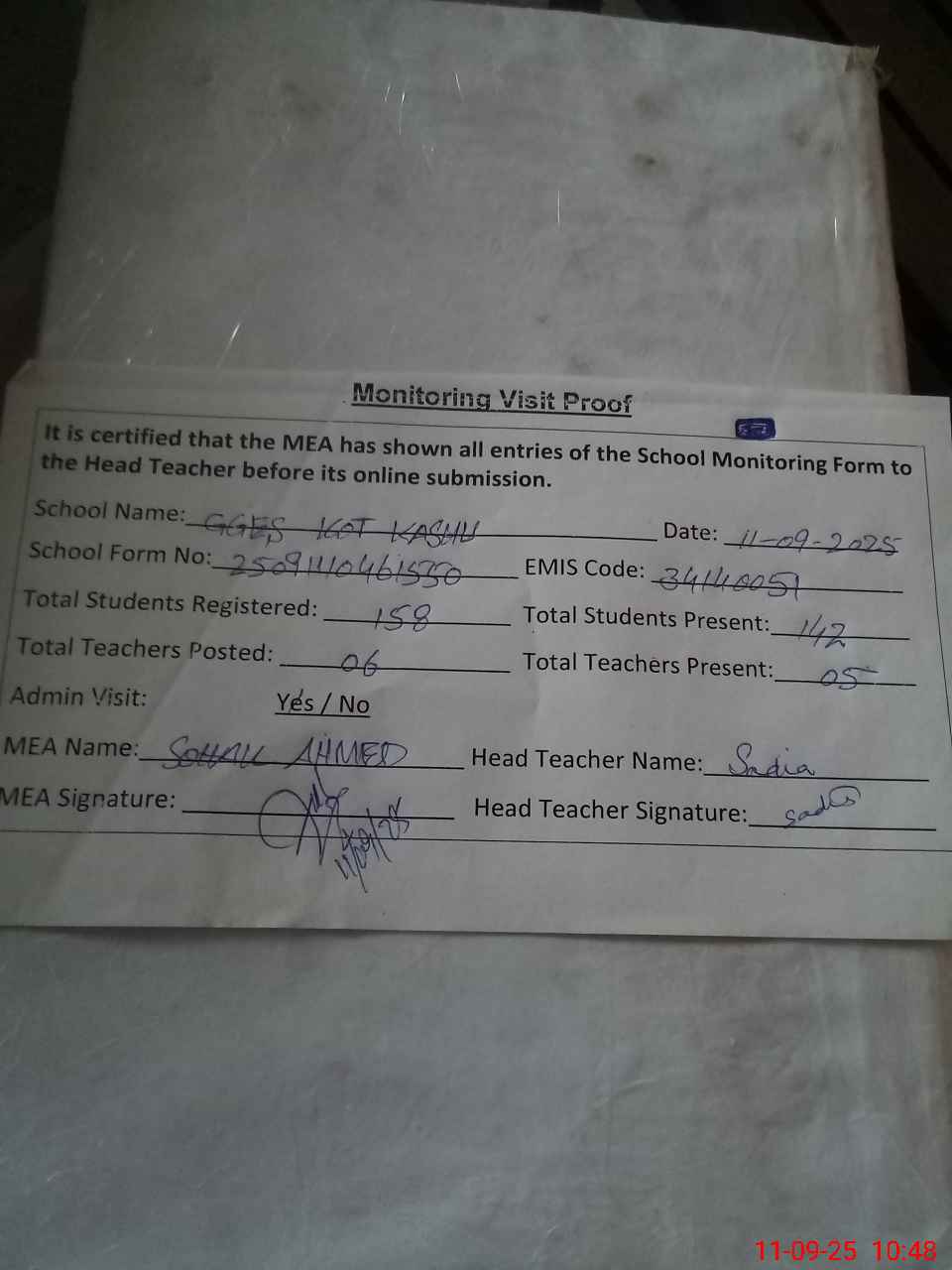 | EMIS Code: 34140051 | Name of School: GGES KOT KASHU | |||