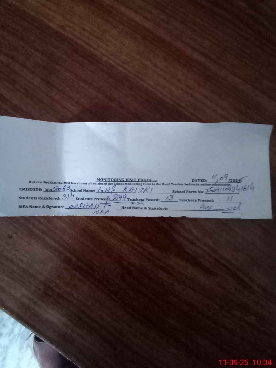 | EMIS Code: 38450063 | Name of School: GHS RATRI SAHIWAL | |||