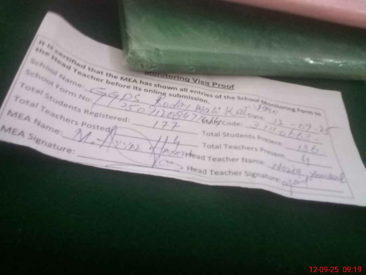 | EMIS Code: 31110663 | Name of School: GGPS RODAY WALI KAT | |||