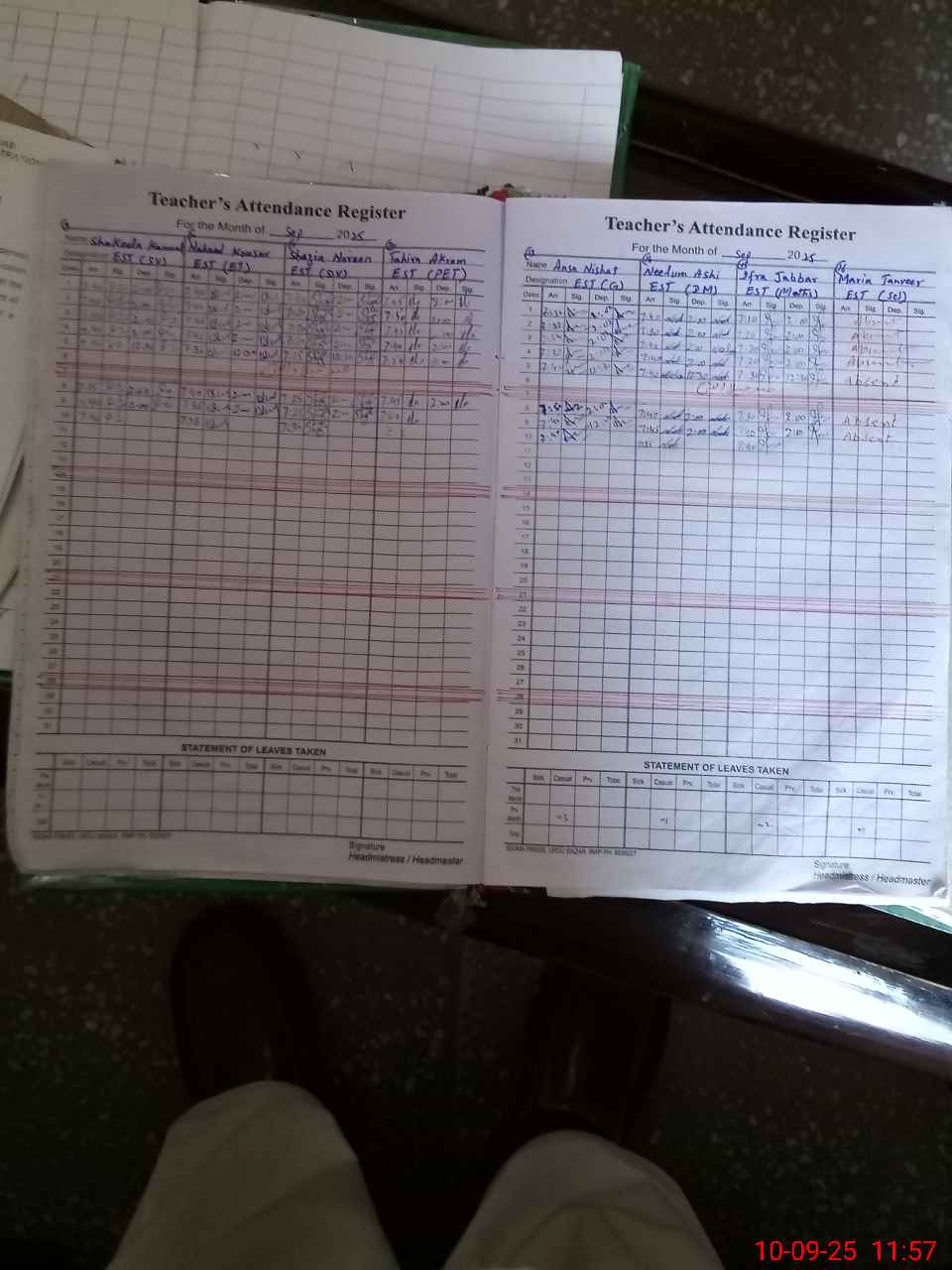 | Attendance Register | Head Teacher | MEA with School | Visit Proof |