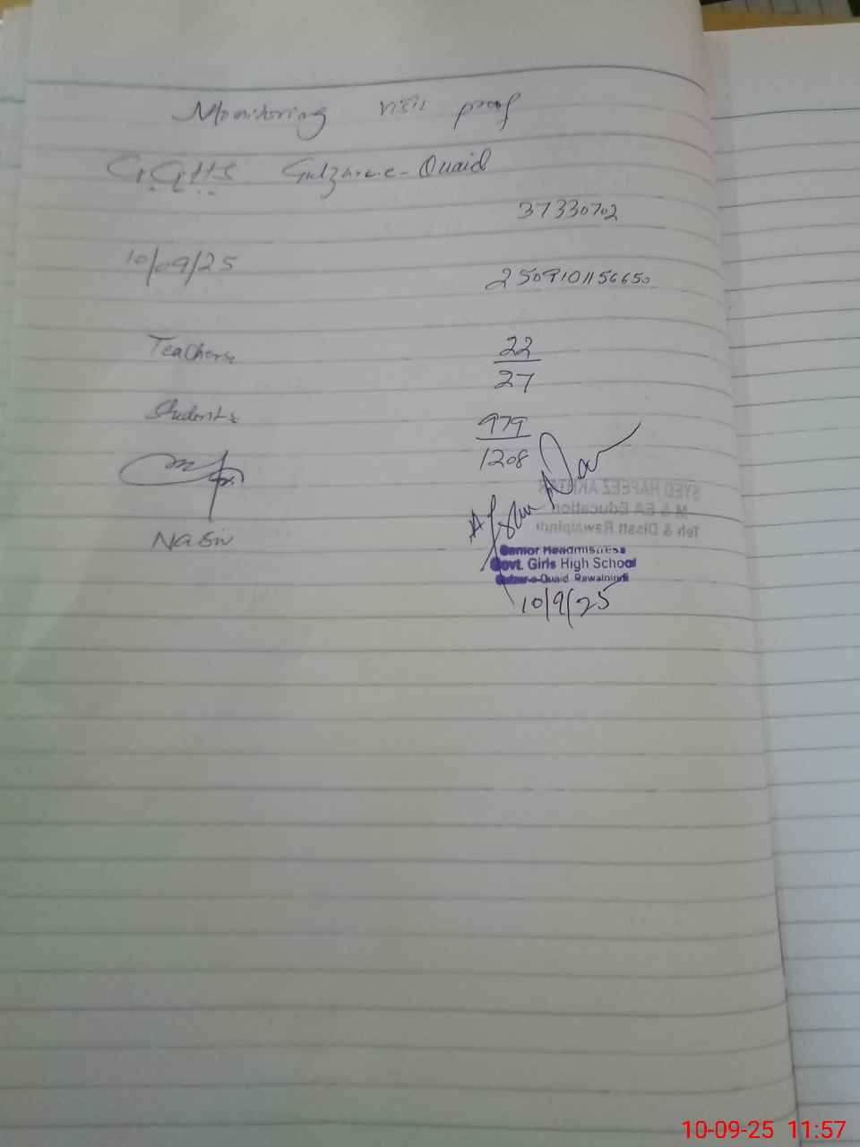 | EMIS Code: 37330702 | Name of School: GGHS GANGAL GULZAR-E-QUAID RAWALPINDI | |||