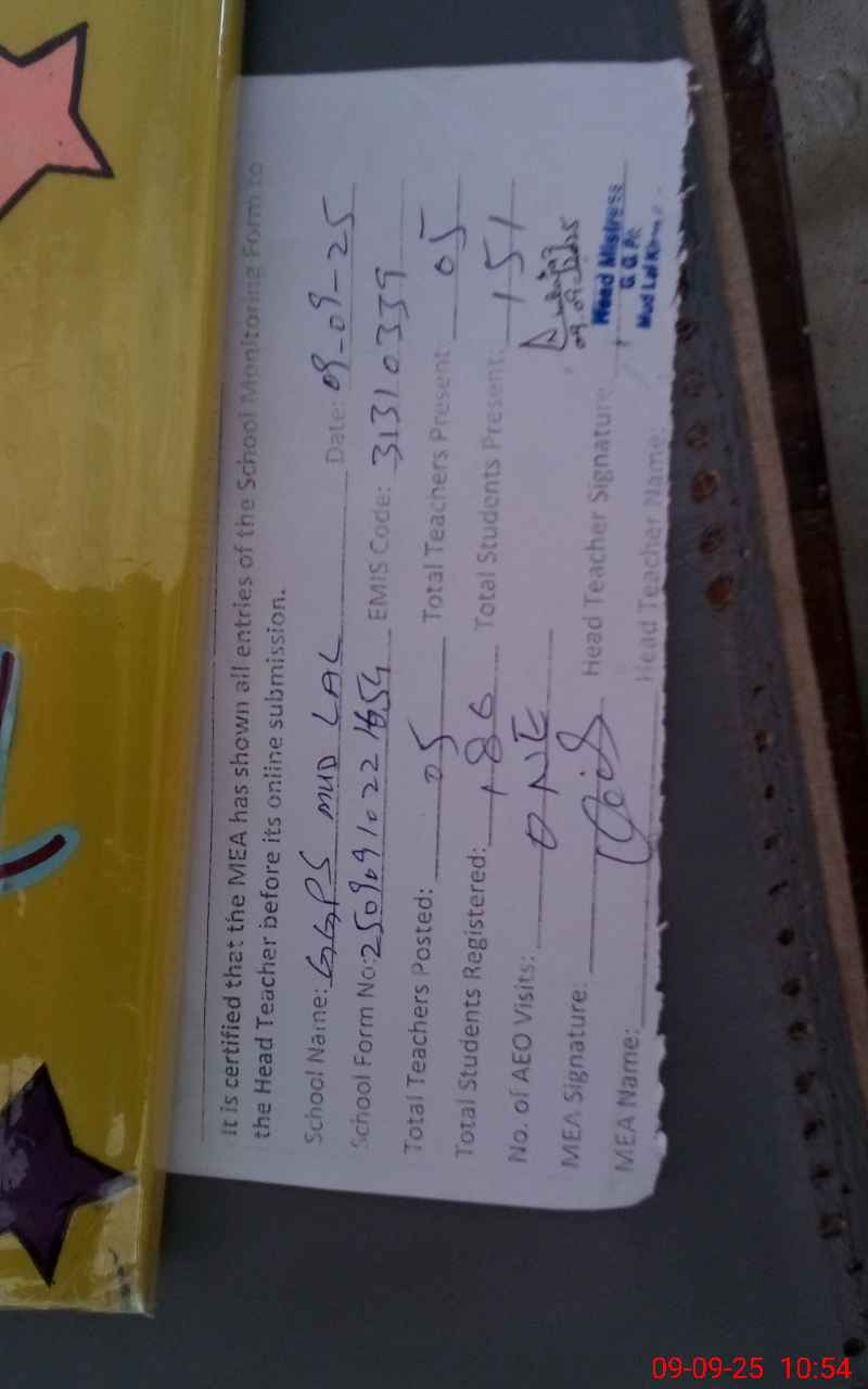 | EMIS Code: 31310339 | Name of School: GGPS MUD LAL | |||