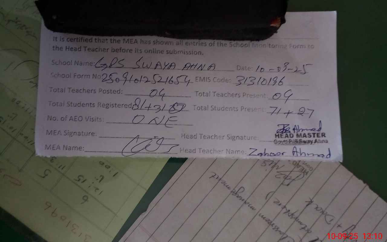 | EMIS Code: 31310196 | Name of School: GPS SWAYA AHNA (After Noon) | |||