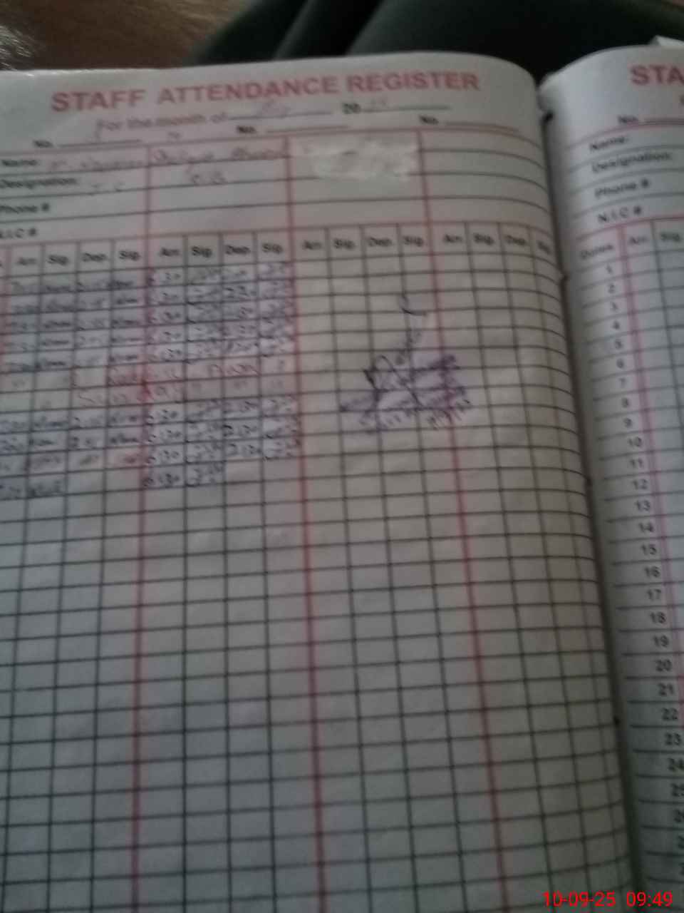 | CNIC | Full Name | Designation | R/C | Absence During Last Calender Month |