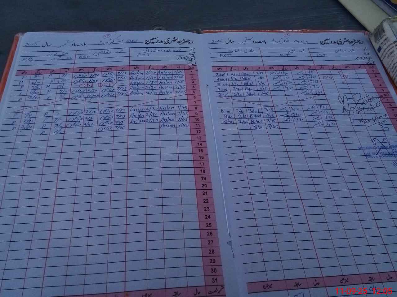 | CNIC | Full Name | Designation | R/C | Absence During Last Calender Month |