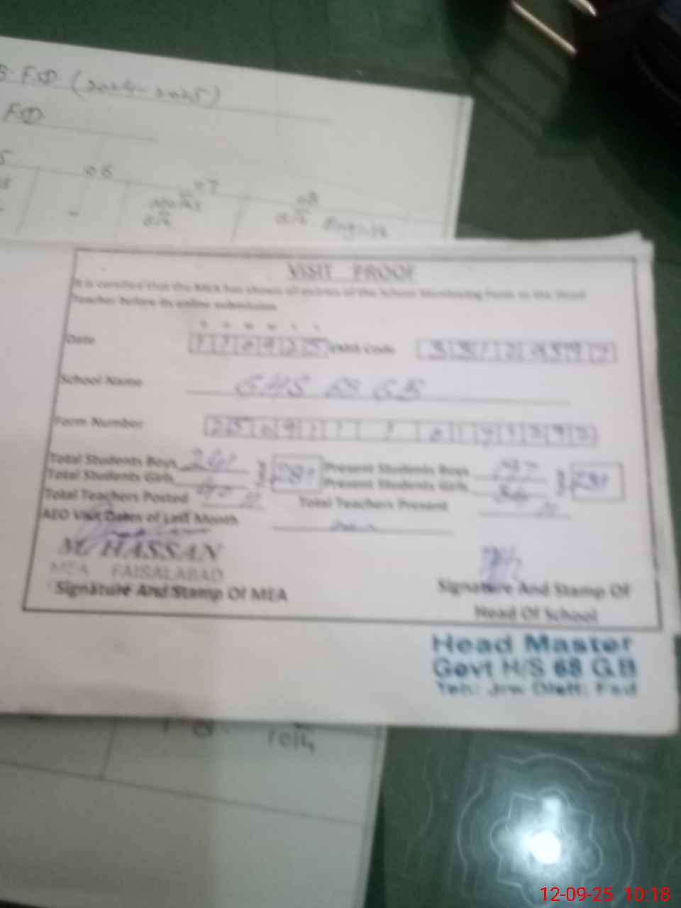 | Attendance Register | Head Teacher | MEA with School | Visit Proof |