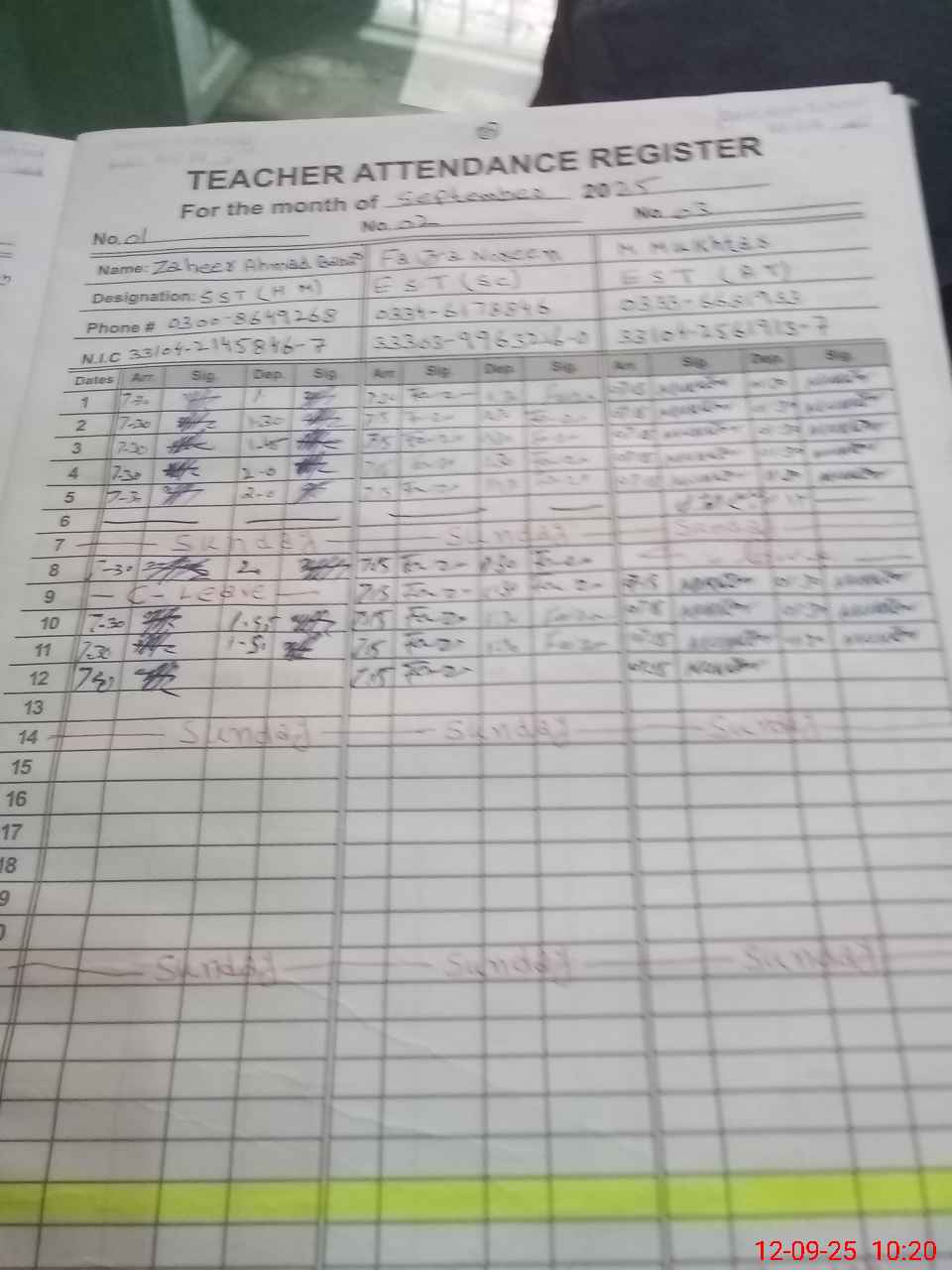 | Name: Za**** Ah**** Ba**** Designation: (School Headmaster's/Headmistress's) SST (Arts) Phone/Cell Number: 03**** |