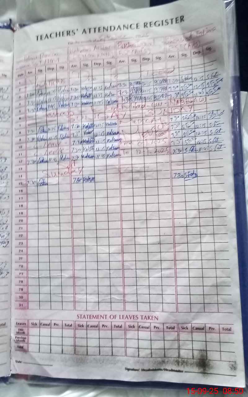 | 33**** | Ka**** Ak**** | 3 | 1 | 0 | 0 | 0 | 0 | 0 | 0 | 0 | 0 | 0 | Absent (Un-Authorized) |