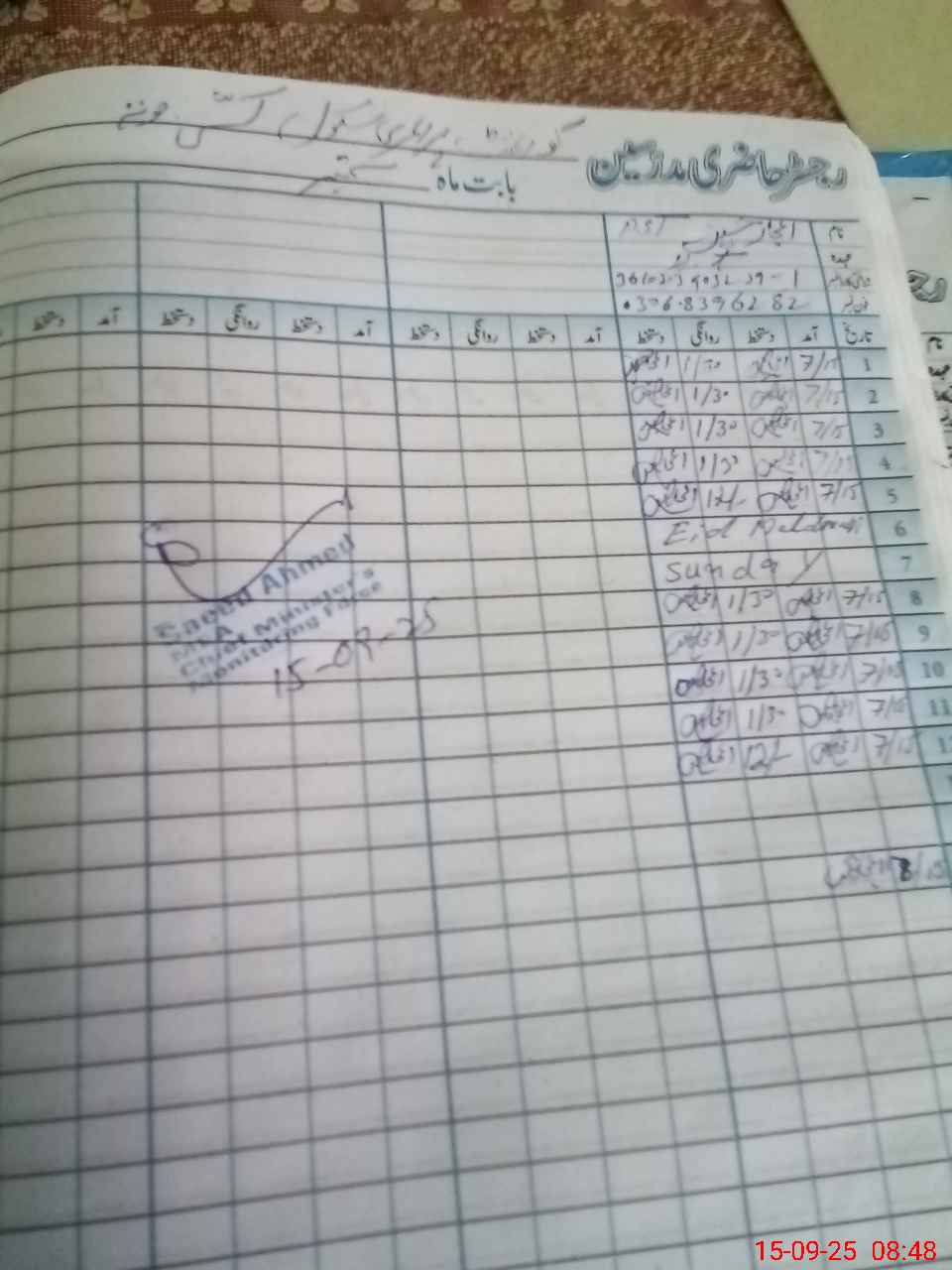 | Monitoring Date: 15-09-2025 | Start Time: 15-09-2025 08:24 AM | End Time: 15-09-2025 09:00 AM | Name of MEA: Sa**** Ah**** | |