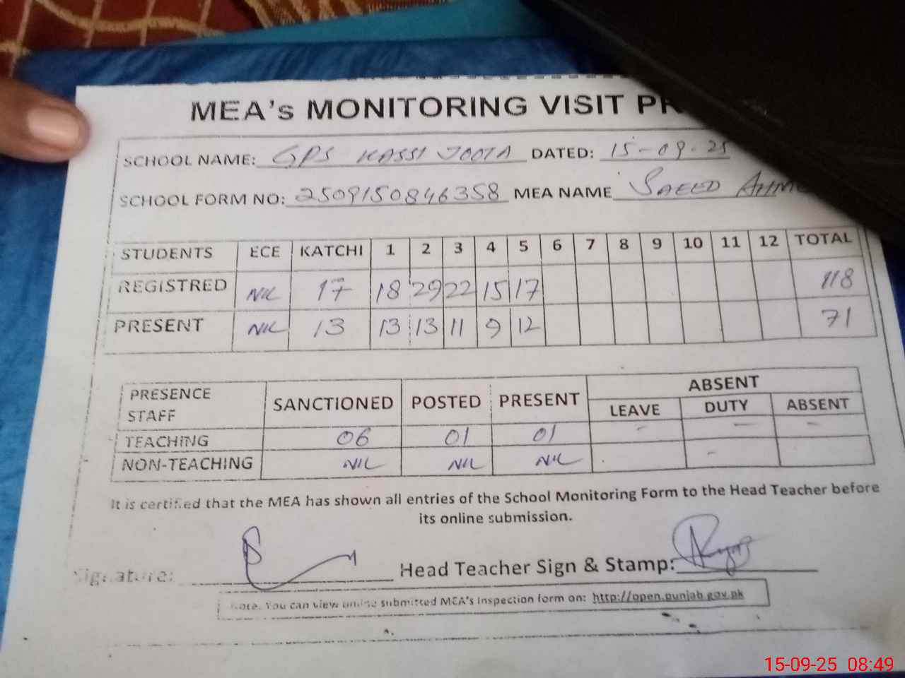 | EMIS Code: 36410323 | Name of School: GPS KASSI JOOTA, NAWAN SHEHR | |||