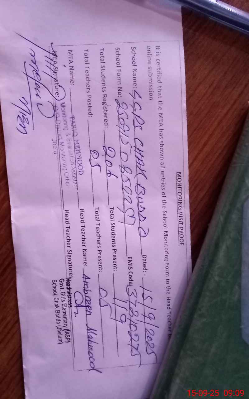 | EMIS Code: 37210275 | Name of School: GGPS CHAK BUDDO | |||