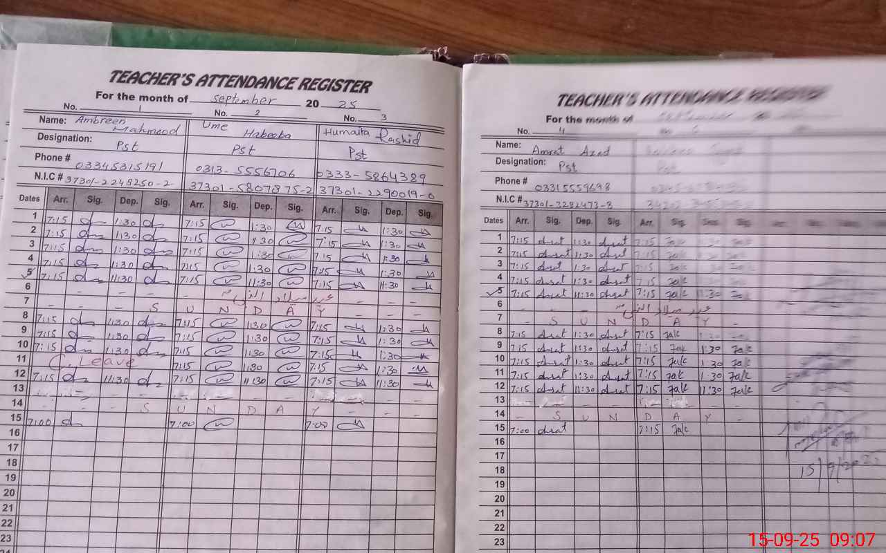 | Attendance Register | Head Teacher | MEA with School | Visit Proof |