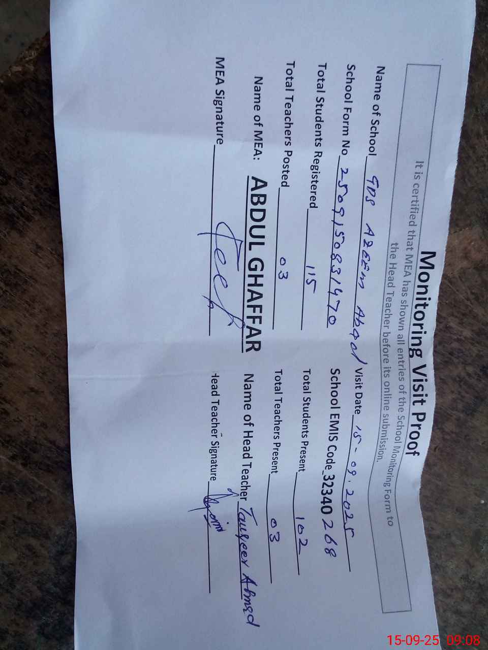 | EMIS Code: 32340268 | Name of School: GPS AZEEM ABAD | |||