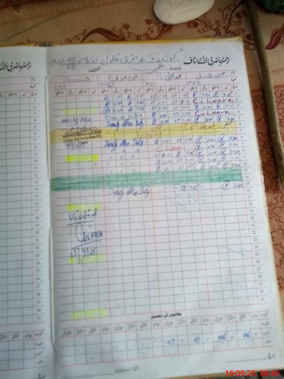 | CNIC | Full Name | Designation | R/C | Absence During Last Calender Month |