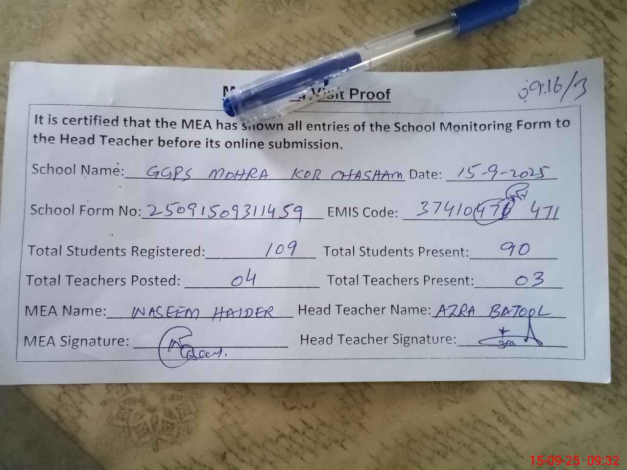 | EMIS Code: 37410471 | Name of School: GGPS MOHRA KOR CHASHAM | |||