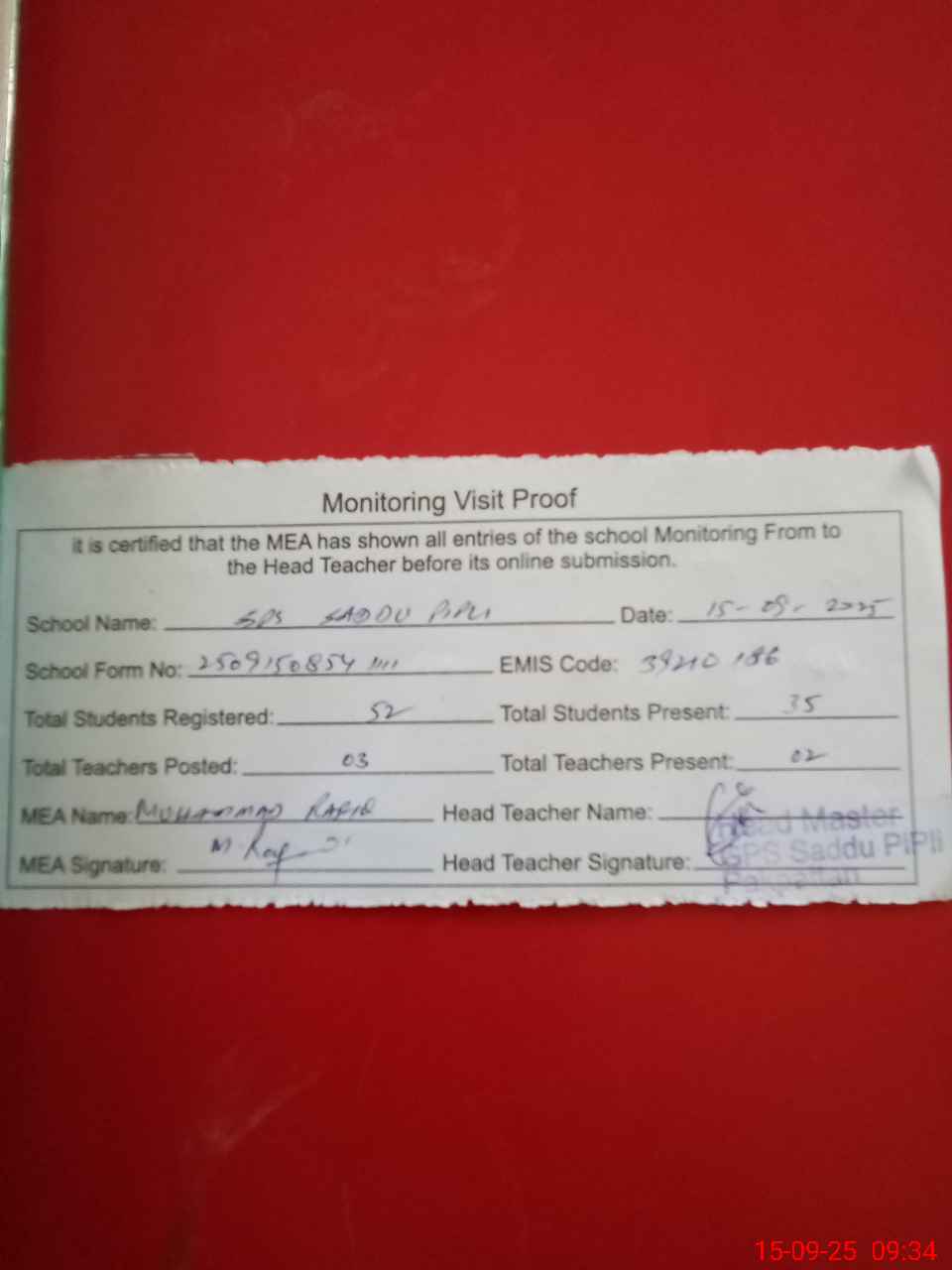 | EMIS Code: 39210186 | Name of School: GPS SADDU PIPLI PO PAKPATTAN | |||