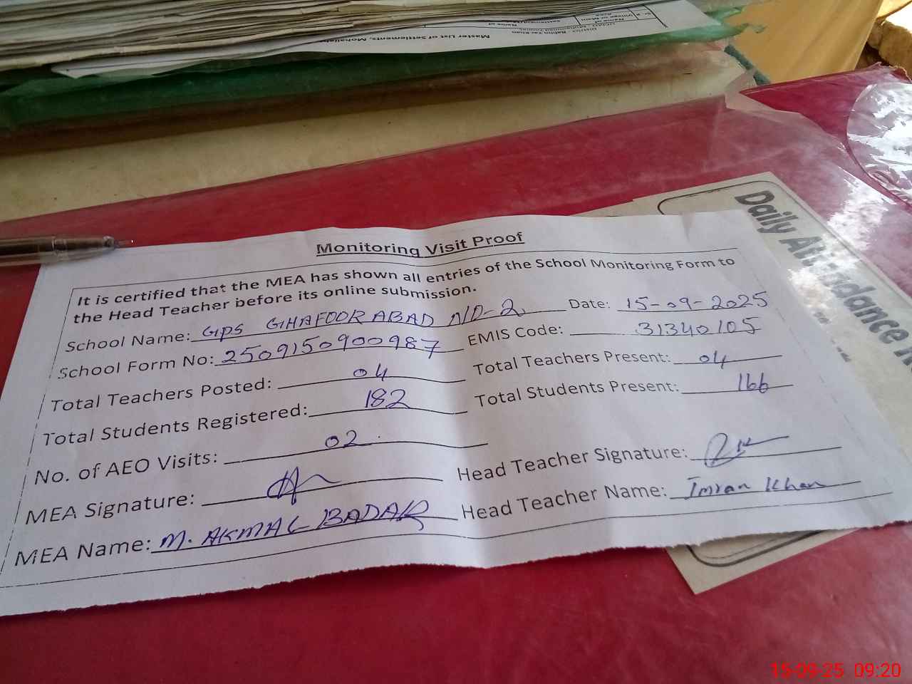 | EMIS Code: 31340105 | Name of School: GPS GHAFOOR A SADIQABAD NO.2 | |||