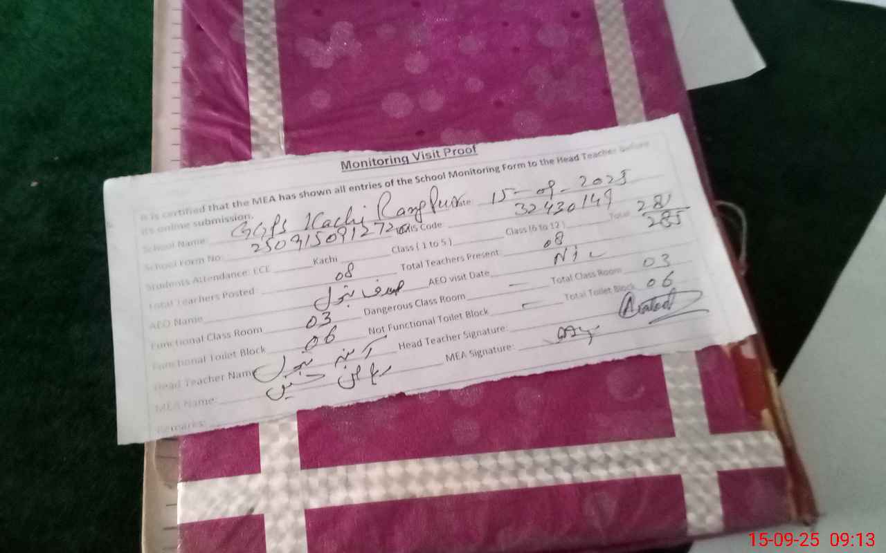 | EMIS Code: 32430149 | Name of School: GGPS KACHI RANG PUR | |||