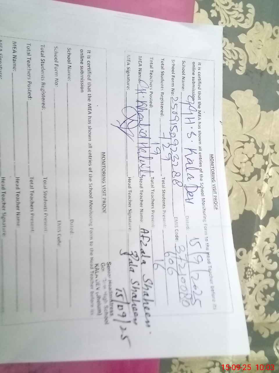 | EMIS Code: 37210080 | Name of School: GGHS KALA DEV | |||