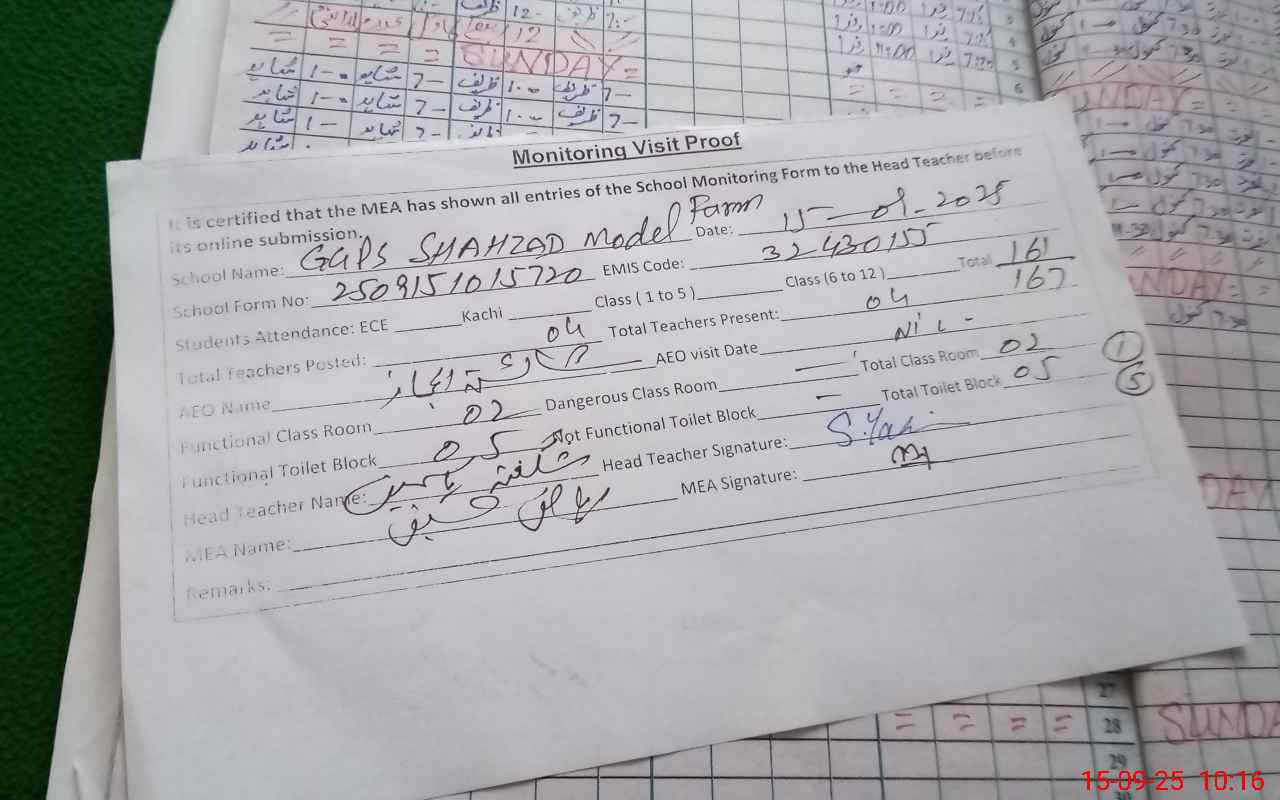 | EMIS Code: 32430155 | Name of School: GGPS SHAHZAD MODEL FARM | |||