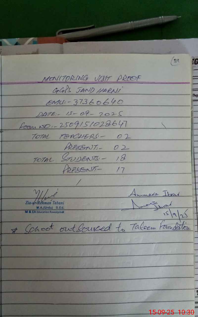 | EMIS Code: 37360640 | Name of School: GGPS JAND HARNI | |||