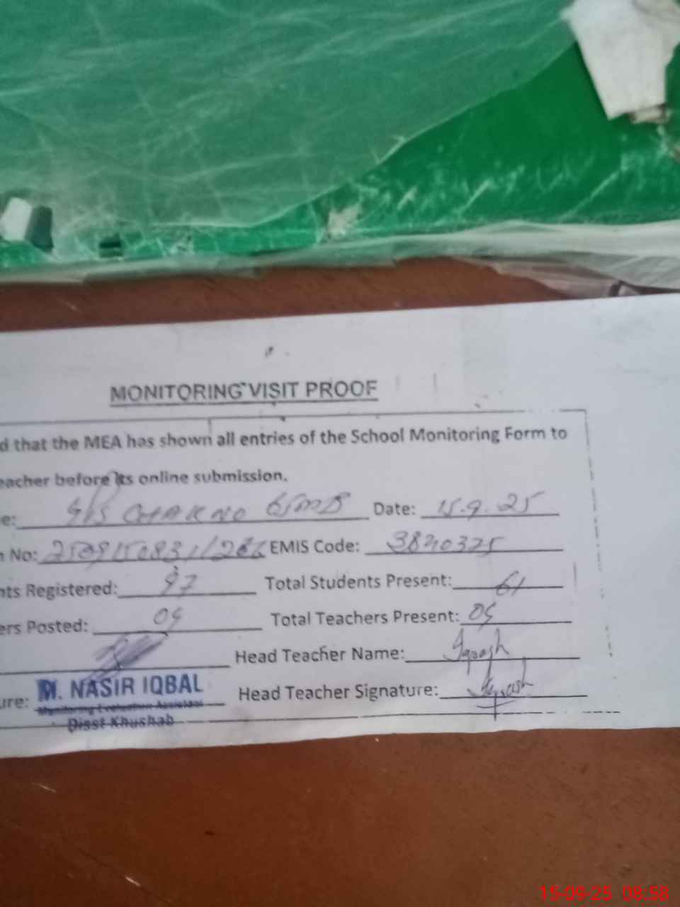 | EMIS Code: 38210375 | Name of School: GPS CHAK 65 MB | |||