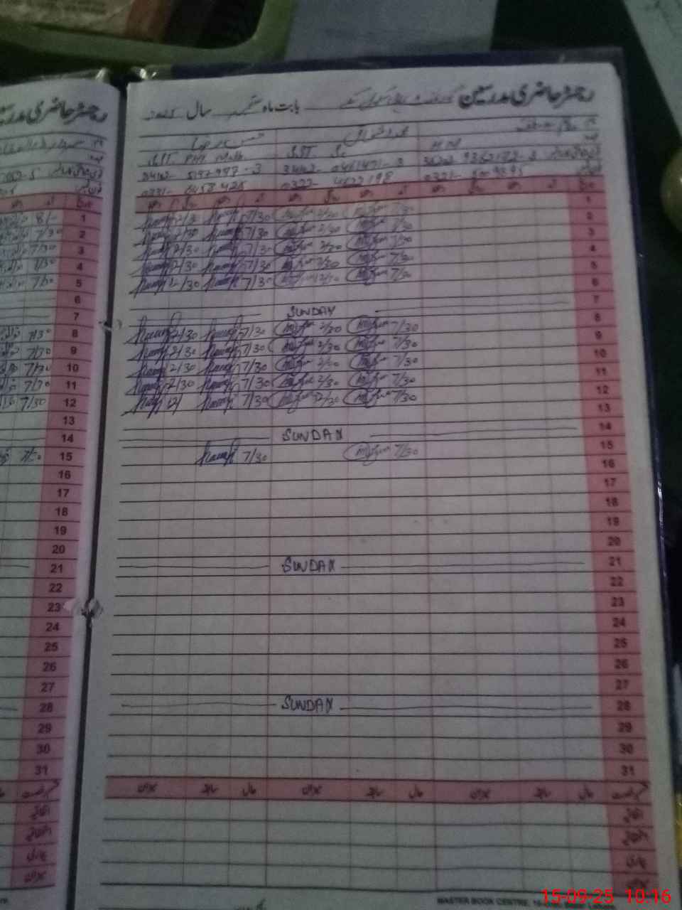 | CNIC | Full Name | Designation | R/C | Absence During Last Calender Month |