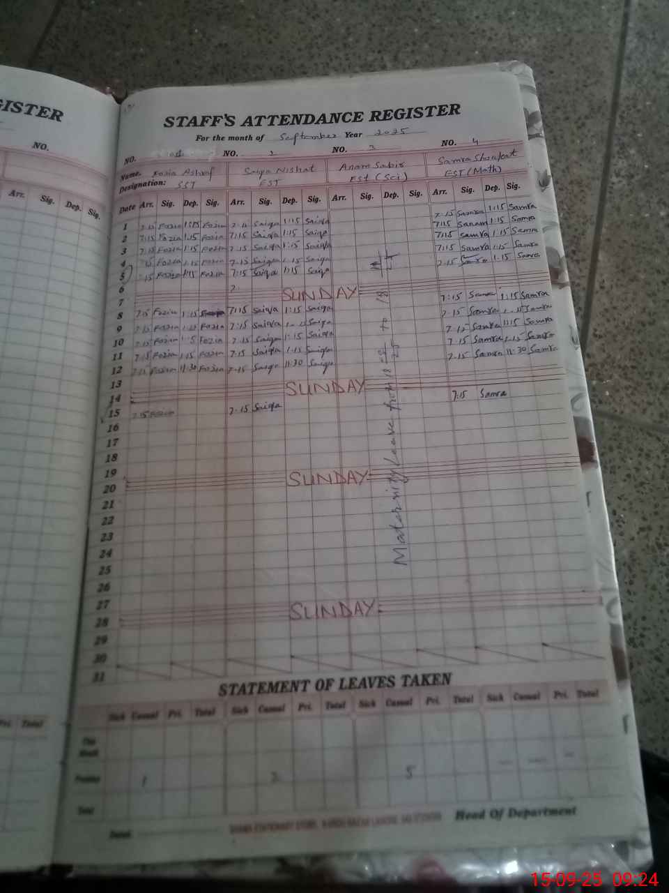 | 34**** | An**** Sa**** | EST | Regular | 0 | 0 | 0 | 0 | 0 | 0 | 0 | 0 | 0 | Maternity |