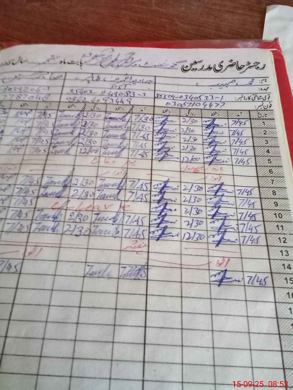 | Name: Mo**** Al**** Ar**** Designation: (School Headmaster's/Headmistress's) ESE Sci-math Phone/Cell Number: 03**** |
